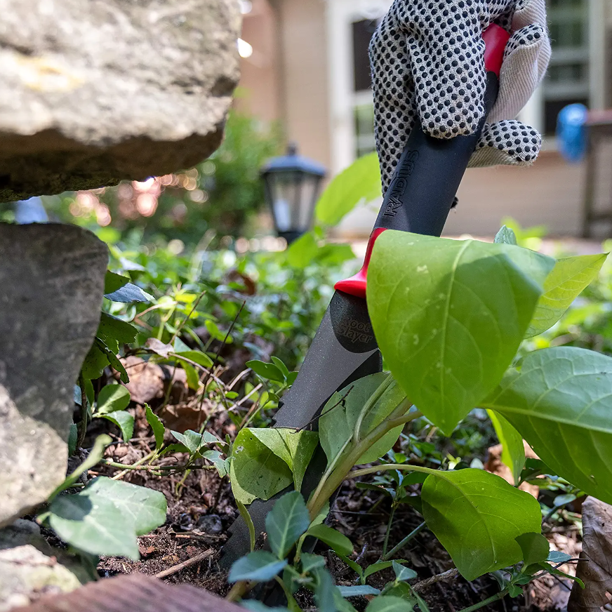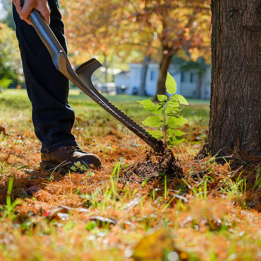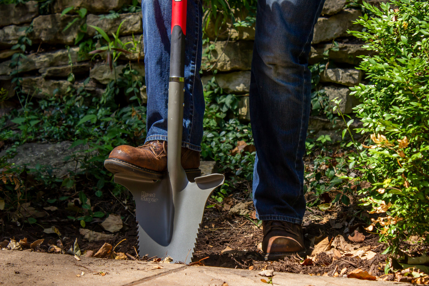 RootSlayer™ is a world first. Designed in the shape of a spade, it is sharpened at the tip and set on the sides to allow for a multitude of gardening tasks that previously required several tools. Its shape and carbon steel construction give the product a very high level of quality, sure to satisfy even the most demanding gardeners. You can use it to dig, saw, cut, slice, move, and rake. RootSlayer™ is definitely your new essential tool in your garden.